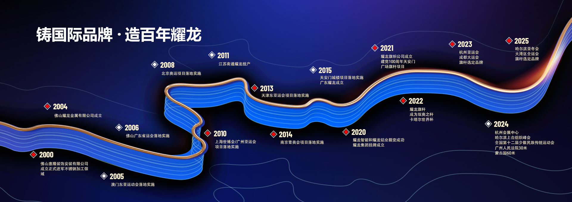 主營旗桿、不銹鋼旗桿、鋁合金旗桿、頒獎旗桿等旗桿廠家,公司所生產(chǎn)的旗桿產(chǎn)品已經(jīng)20年,形成良好的市場口碑。國家以及政府地區(qū)的大型項目形象工程均指定使用耀龍旗桿。已成功成為天安門城樓、北京奧運會、北京冬奧會、國家博物館、福建海峽國際會展中心、上海世博會、亞洲運動會、深圳大運會、南京青奧會、廣州奧體中心、汕頭亞青會、廣州國際會展中心、卡塔爾世界杯廣場、福建廈門新會展中心的旗桿選定升旗品牌,為國家運動賽事的順利開展作出了巨大貢獻。